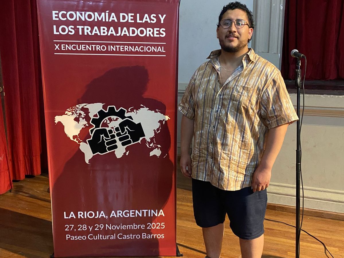 El tesista Fabián Neira, integrante del Grupo de Estudios “Dinámicas Emergentes del Trabajo”, coordinado por la profesora Areli Escobar, académica del Departamento de Sociología de la Universidad de Concepción, participó recientemente en el X Encuentro de Economía de los Trabajadores y Trabajadoras, realizado en La Rioja, Argentina.